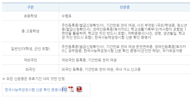 수험표(사진첨부 출력 or 부착) 및 신분증 지참(학생증 미인정).